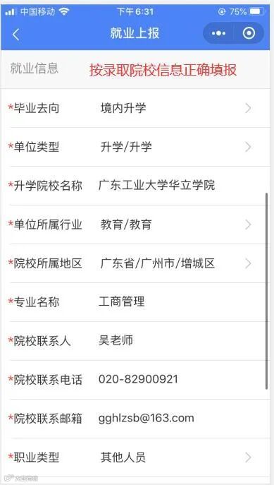 关于就业填报和档案派遣信息院校联系人和电话的填写,不清楚时可以联系本科招生办老师获取。
