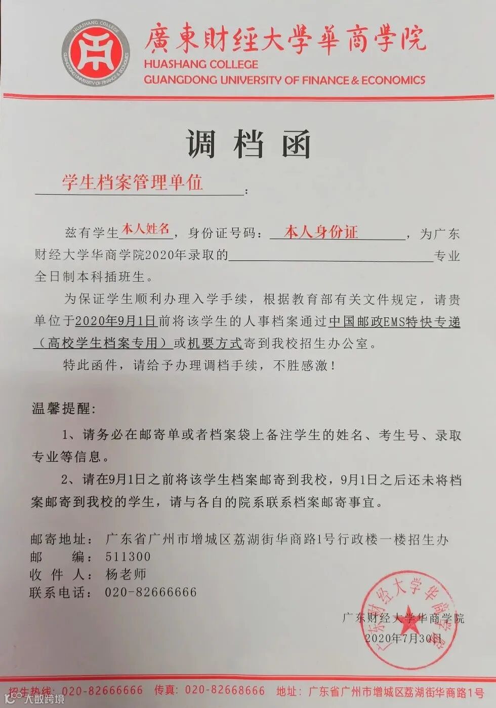 如果你发现通知书里边没有调档函的,那么去看一下官网或官方公众号是否有说明,部分学校的通知书里是让考生自己去官网下载调档函,如果啥都没说明的建议直接问招生办。