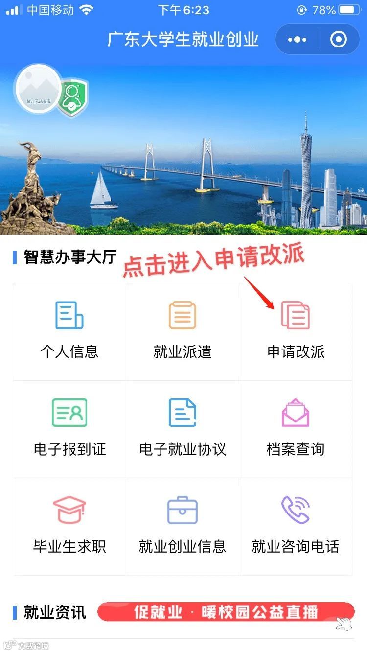 PS:有些学校现在是要求考生自己在小程序“广东大学生就业创业”里边申请改派。大家可以去问问学校,确定一下是否需要在小程序这里申请改派。