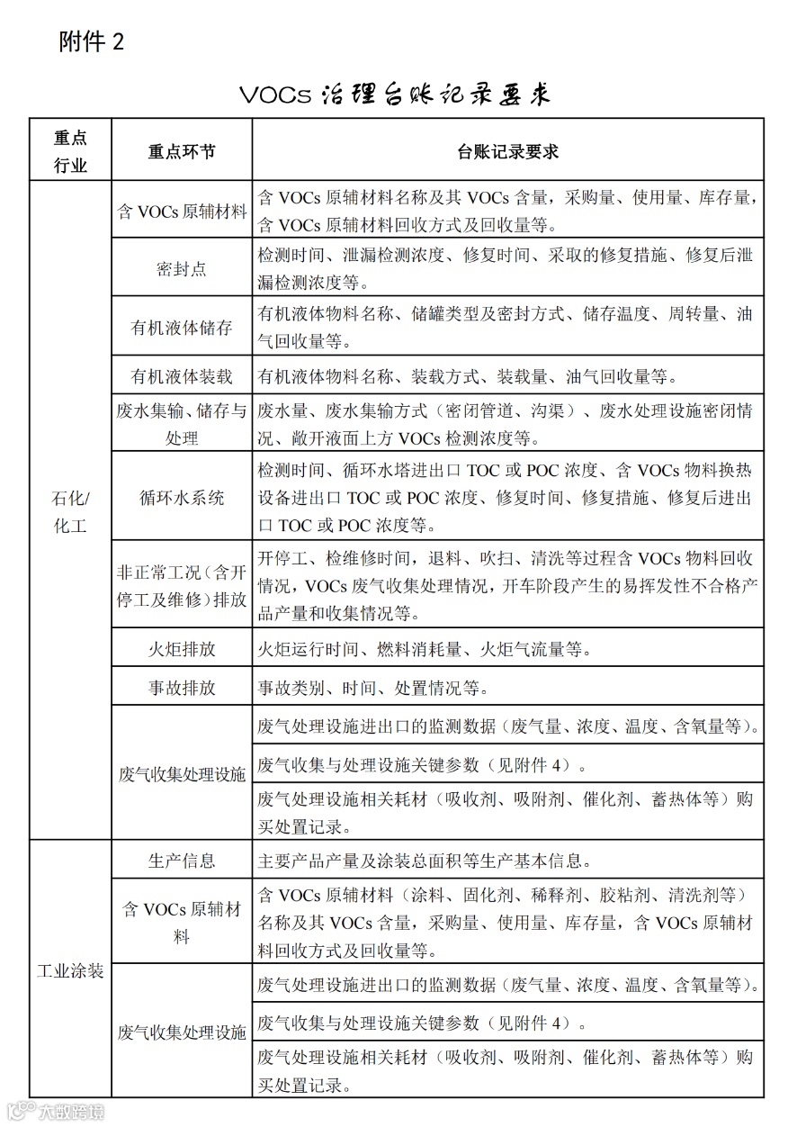 附件2:VOCs治理台账记录要求