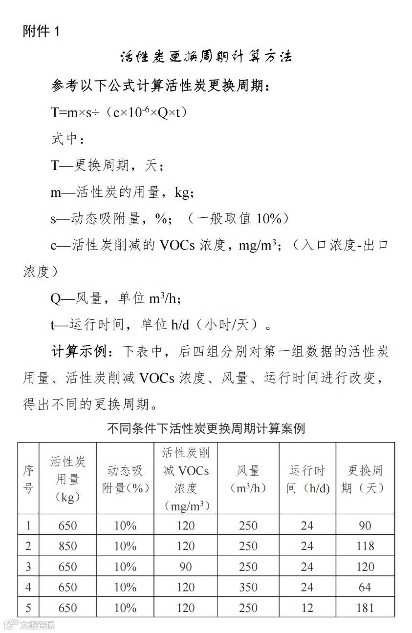 附件1:活性炭更换周期计算方法