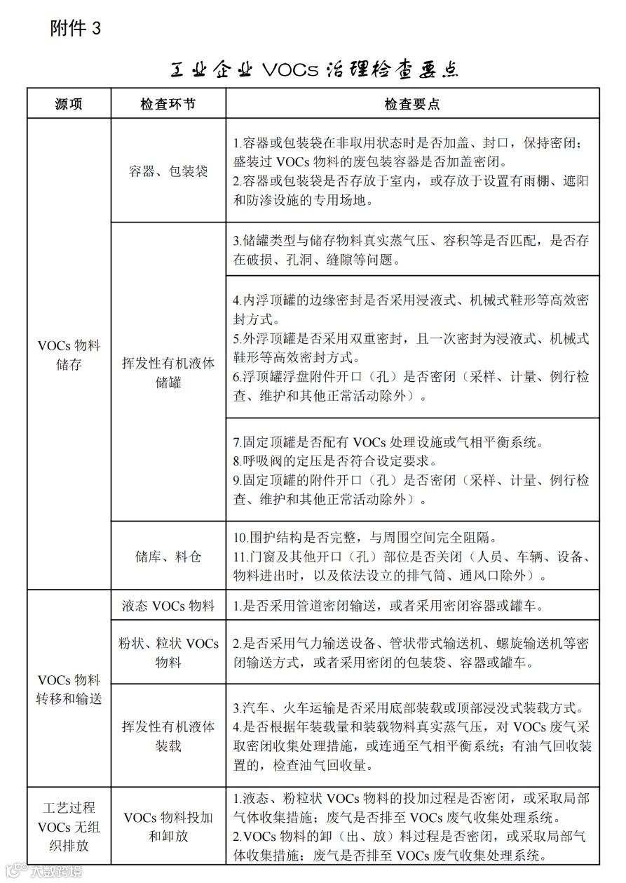 附件3:工业企业VOCs治理检查要点
