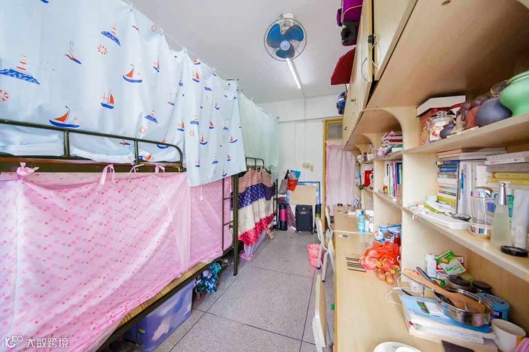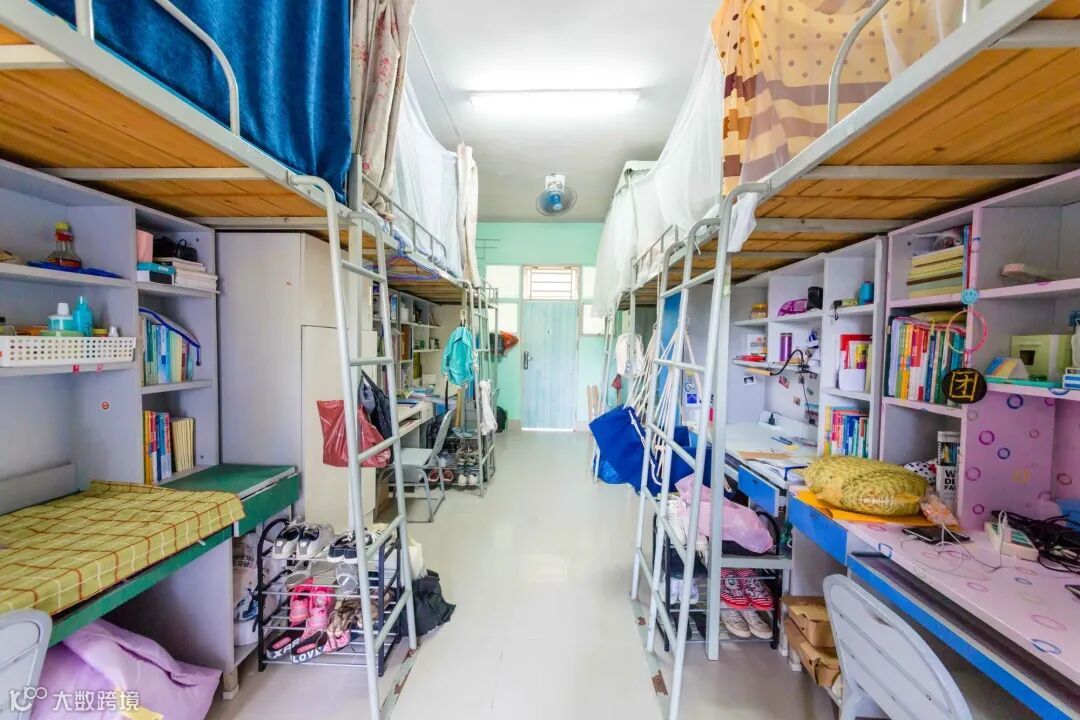 中苑大部分是旧宿舍,规格为八人间和四人间,少数是新宿舍,规格为六人间。床与书桌是分开来的,上下床统一在一边,书桌在另一边。