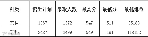 理科类专业都是过线录取,而文科类和艺术类专业竞争较激烈,都超过了省最低线50分,其中国贸专业的投档分最高。