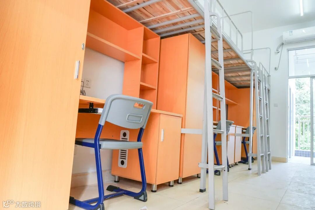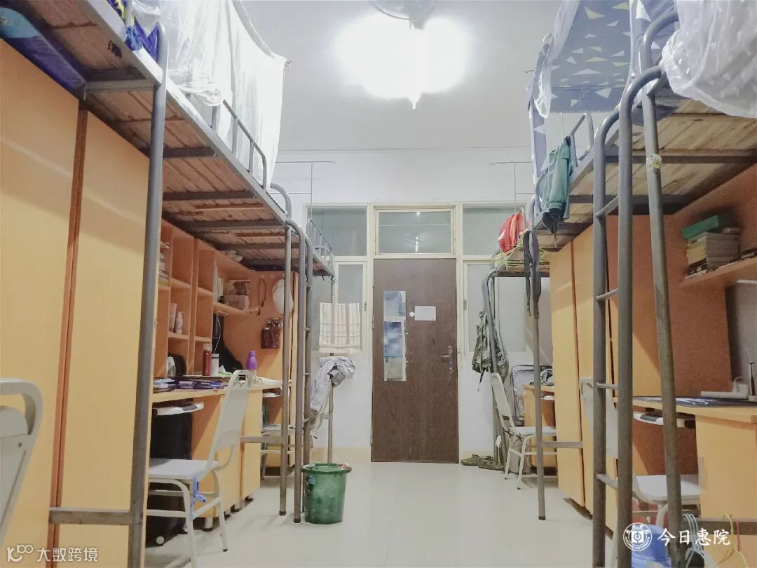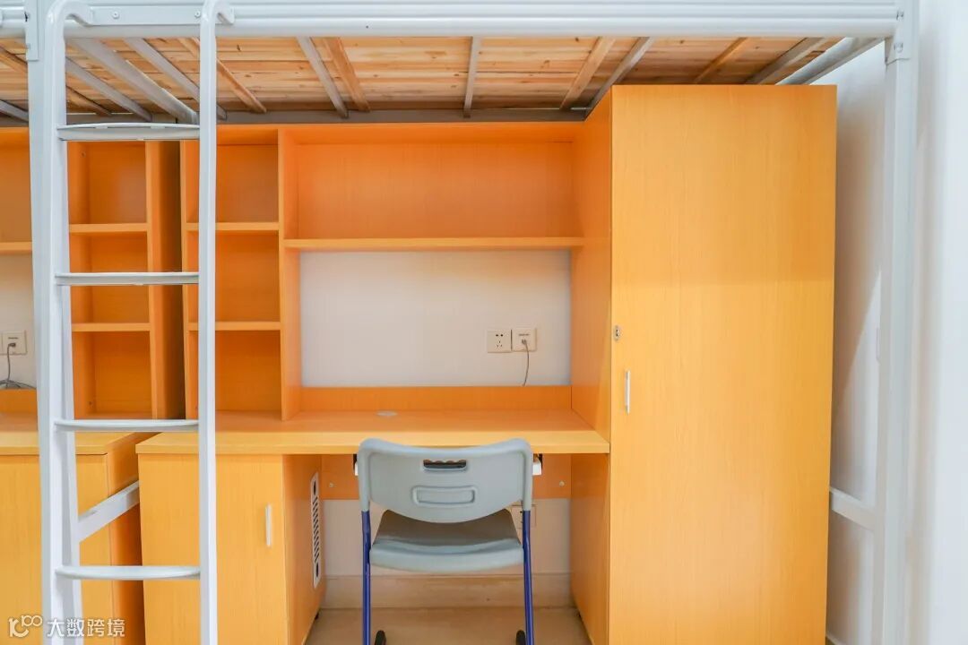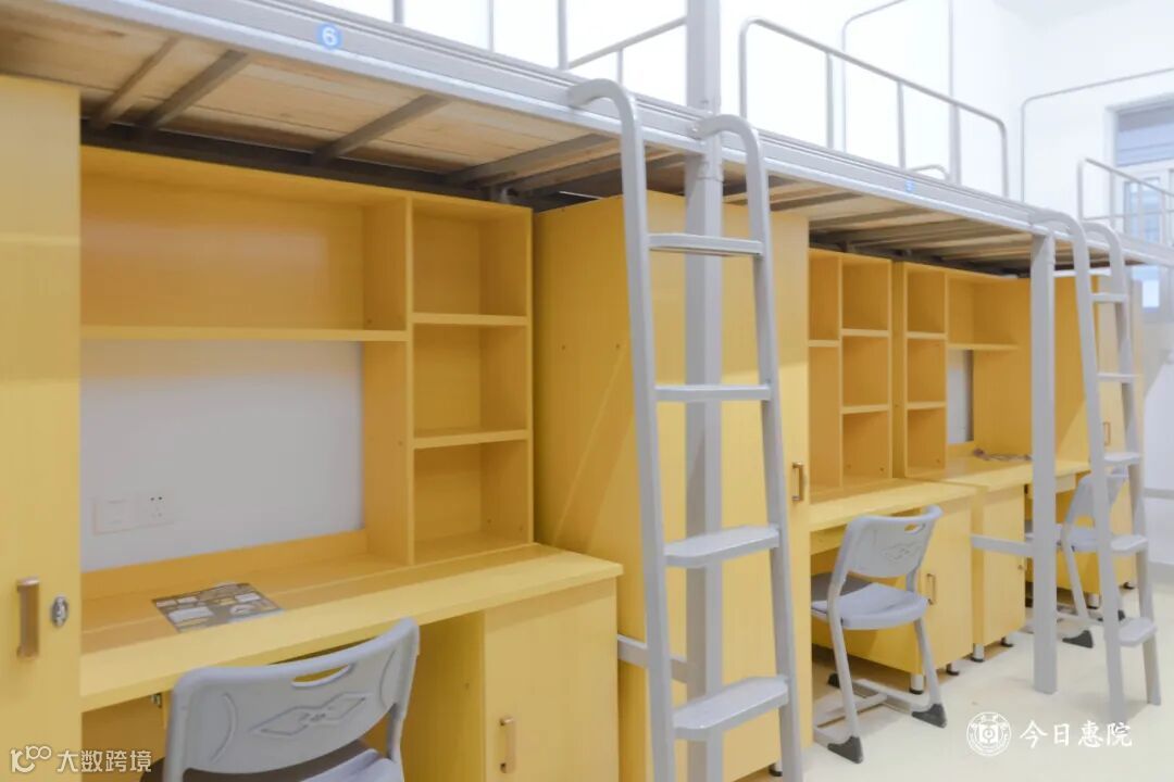 南苑新宿有半新宿舍和新宿舍,规格为六人间,是令人心动的上床下桌,每个床位下配置都配置有衣柜。