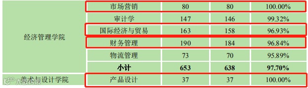 除了财务管理、国际经济与贸易、市场营销和产品设计是择优录取,其他专业均为过线录取,参与补录。
