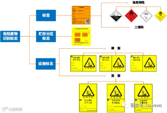 危险废物识别标志包括:危险废物标签,危险废物贮存分区标志,危险废物贮存、利用、处置设施标志。