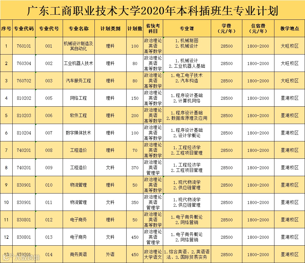 注:我校2020年本科插班生最终专业招生和计划数以广东省教育考试院发布公布为准。