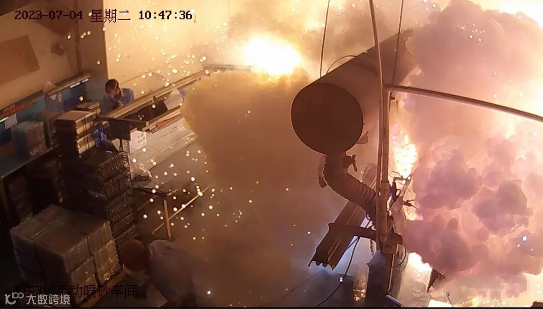 10 时 47 分 36 秒,车间内打磨线除尘主管道发生强烈爆炸。