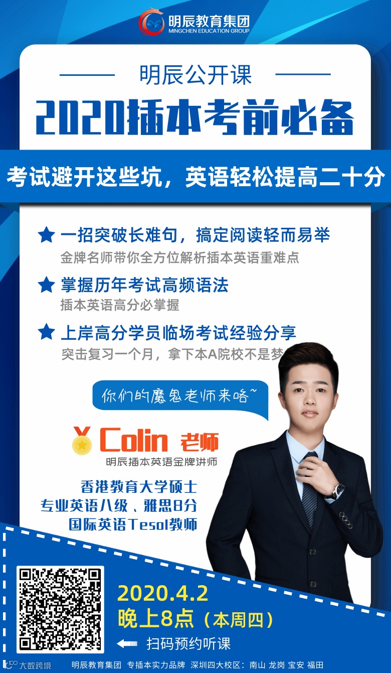 这是一个专门针对2020插本考前公开课。学完课程,你会收获:掌握插本考试中常见语法和长难句,助你英语提分二十分。