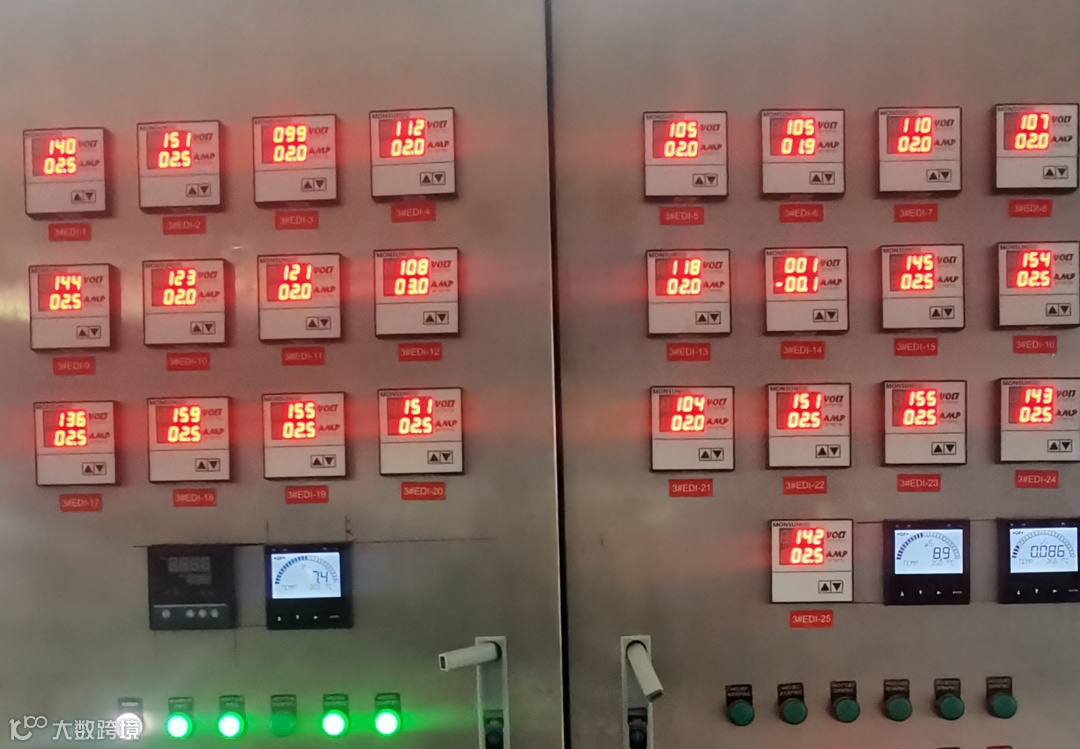 经过化学清洗后,EDI的水量明显恢复,单套浓水水量由污堵时的7.5m³/h(合300L/h/台)升至13m³/h/台(合520L/h/台),化学清洗完成后,EDI需要进行数小时的高电流(一般3-3.5A)再生过程,产水水质才可完全恢复。