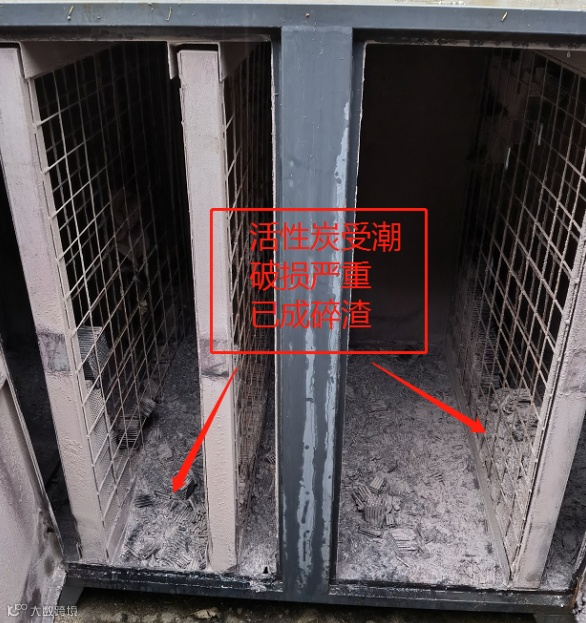 活性炭受潮、破损严重,
