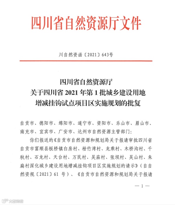 近日,鑫盛达公司申报的达州市达川区第一批增减挂钩项目实施规划经四川省自然资源厅同意,顺利取得立项批复。