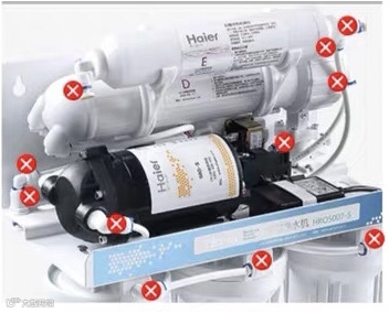 ② 一般净水机有,高达30多个接管转接口,漏水隐患大