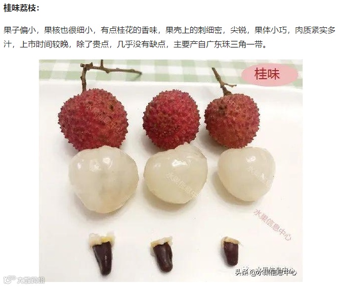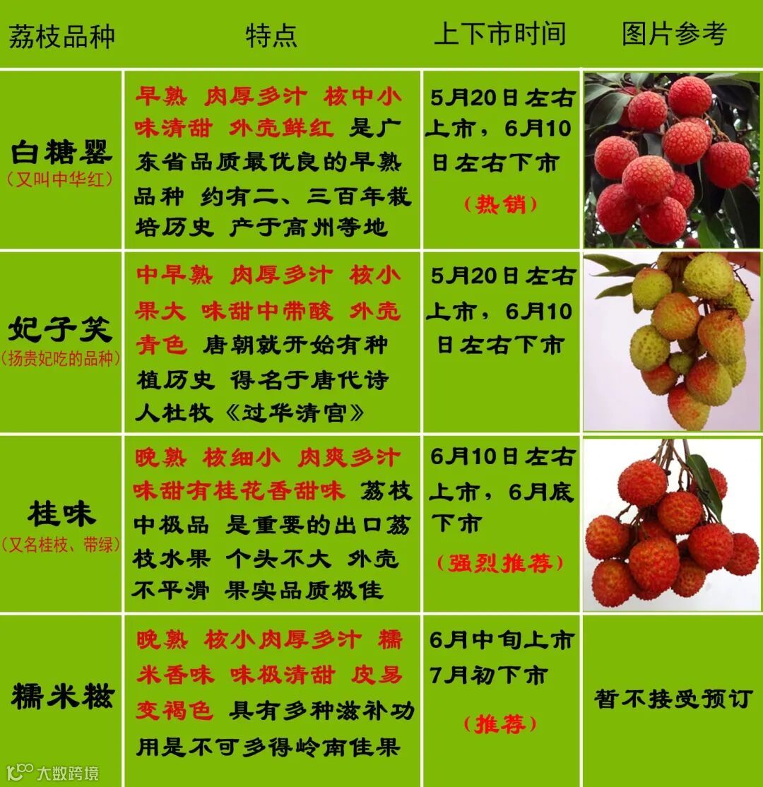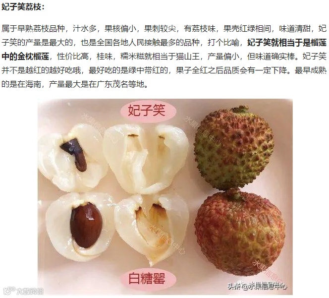 口感:桂味=糯米糍>妃子笑≥白糖罂>荔枝王