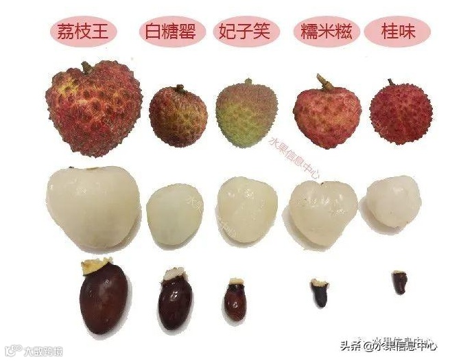 果核:荔枝王>白糖罂>妃子笑>糯米糍>桂味
