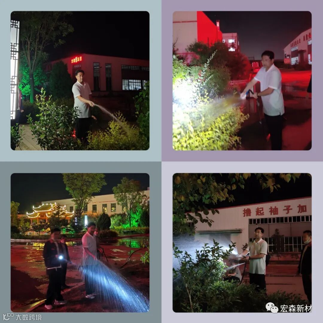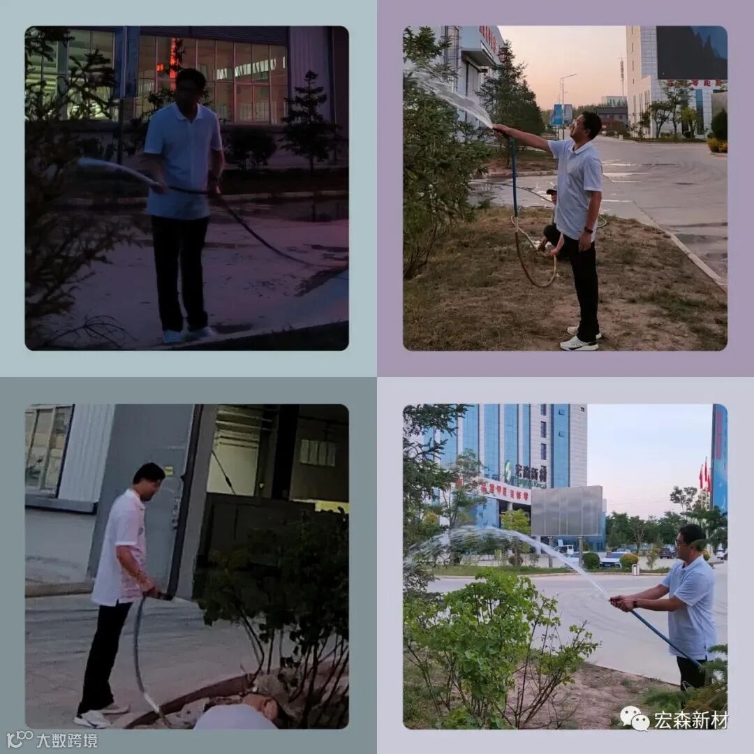 董事长从下午到晚上浇灌厂区绿植