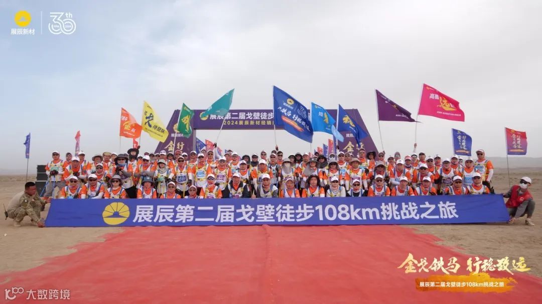 金戈铁马,行稳致远。5月24-27日,中国敦煌,展辰第二届戈壁徒步108km挑战之旅圆满举办。在展辰集团副董事长、展辰戈2赛事主席陈寿生先生的带领下,近百名展辰勇士一起走进敦煌戈壁大漠,历经四天三夜长途跋涉,见天地、见众生、见自我、见未来。重走千年玄奘路,问道八百里流沙。在108km的征途中,勇士们以坚强的毅力和团结协作的精神,挑战自我、突破自我,圆满完成赛事,向展辰集团三十周年献上一份特殊礼物!