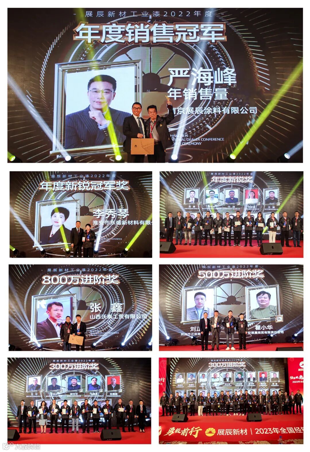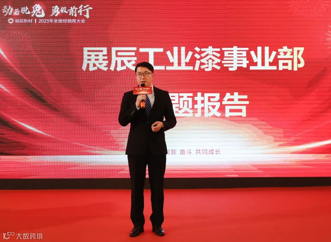 工业漆事业部总经理张君先生,分享了展辰工业涂料逆风飞扬的成长历程,介绍了产品体系、应用领域与项目案例,对2023年的形势与机会进行了分析,从平台、产品、渠道、市场等方面进行了全面的分享,号召经销商伙伴们坚持长期主义,在工业涂料的广阔天地里创造星辰大海!