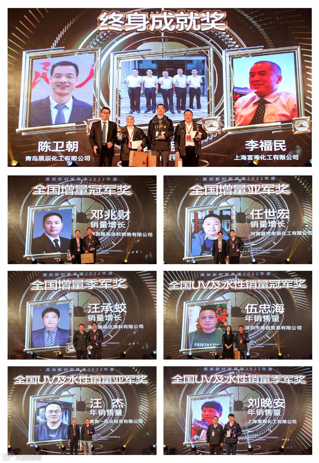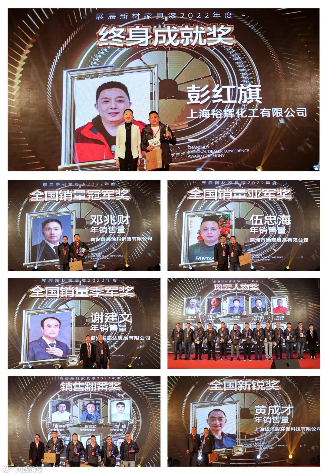 为了对业绩表现突出的经销商进行表彰,本次大会设置了进阶奖、增量奖、销量奖、销售翻番奖、新锐奖、精英奖、风云人物奖、终身成就奖等多个奖项,100余人次获得表彰。每一个业绩数字的背后都有感人的故事,每一个奖项都饱含着经销商伙伴们对事业的热忱。