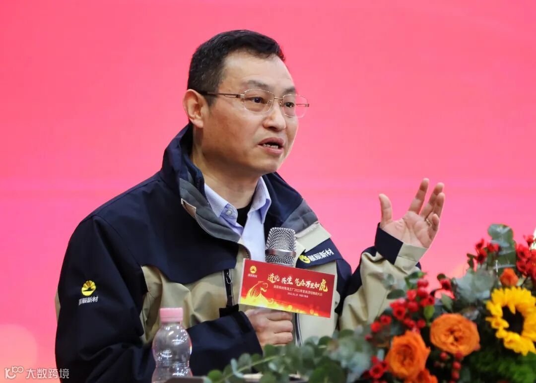 众汇报与分享结束后,展辰新材总裁孙金平先生上台进行了会议总结。他逐一概括了各位分享者的主要内容,并从自己的角度进行了解读和点评。他强调,2022年一定要蹈机握杼,开足马力,实现销售目标,提升产品性能,坚持品牌投入,做好市场洞察及预判,建设好人才梯队。他还表示,选择了展辰就是选择了一种人生追求,就是要以凌云之志,成就一番事业。