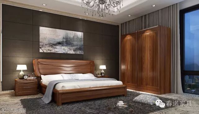 卧室家具摆放1、在选择尺寸合适的床的同时,卧室各家具色调的搭配协调也是十分重要的。