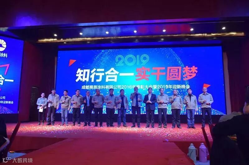 陈冰董事长带领全体员工回顾了与时间赛跑的2018年,集团总部大楼全面竣工、珠海工厂成功试产、濮阳工厂完成设计和审批、集团信息化建设完成立项,在全体展辰人的努力下销售业绩继续逆势飞扬,真诚地感谢在过去一年里辛勤付出的展辰家人和经销商朋友们!展望2019年,集团家具漆业务朝着十年规划砥砺前行,工业漆、海外市场是未来发展的重点领域,希望全员继续奔跑、不懈奋进、迎接挑战。