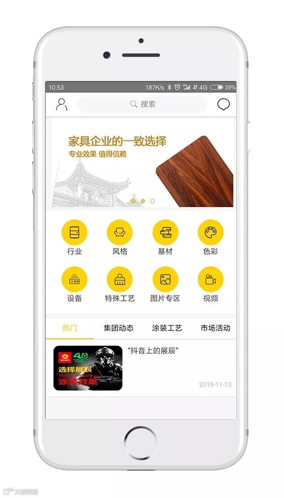 原版APP设置了行业、风格和基材三个模块,全新升级后增加了色彩、设备、特殊工艺、图片和视频专区,目前正加紧上传资料丰富内容。