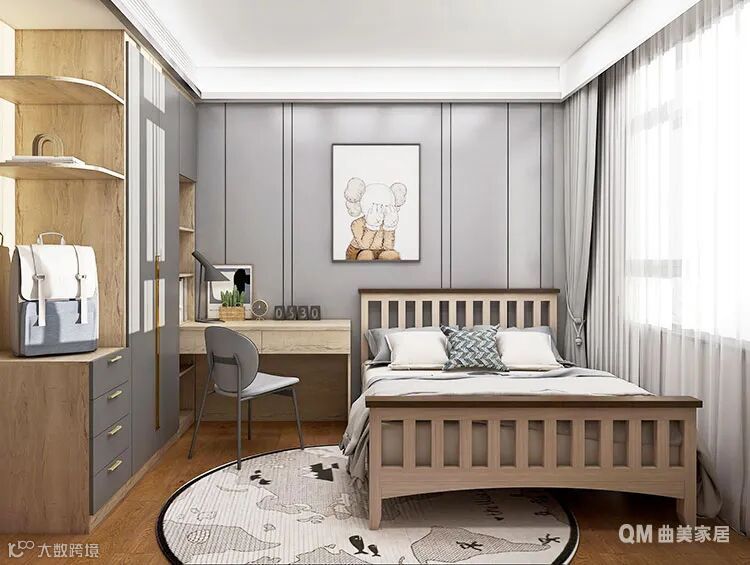 儿童房以经典的原木色调呈现,打破对儿童房的常规认知。一字型书桌和衣柜的设计,让空间功能多样化,学习收纳和睡眠兼具,萌娃在自己的小世界里自由学习,快乐成长。