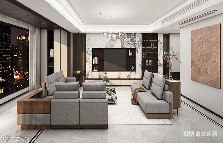 此外,曲美整体木作系统打造时尚和人性化的家居美学空间,包含木门、墙板、窗套、垭口、装饰线等多系列产品,个性化潮流设计,雕琢空间美学,满足百变家居风格需求,会客、办公、学习、娱乐多场景随时切换。