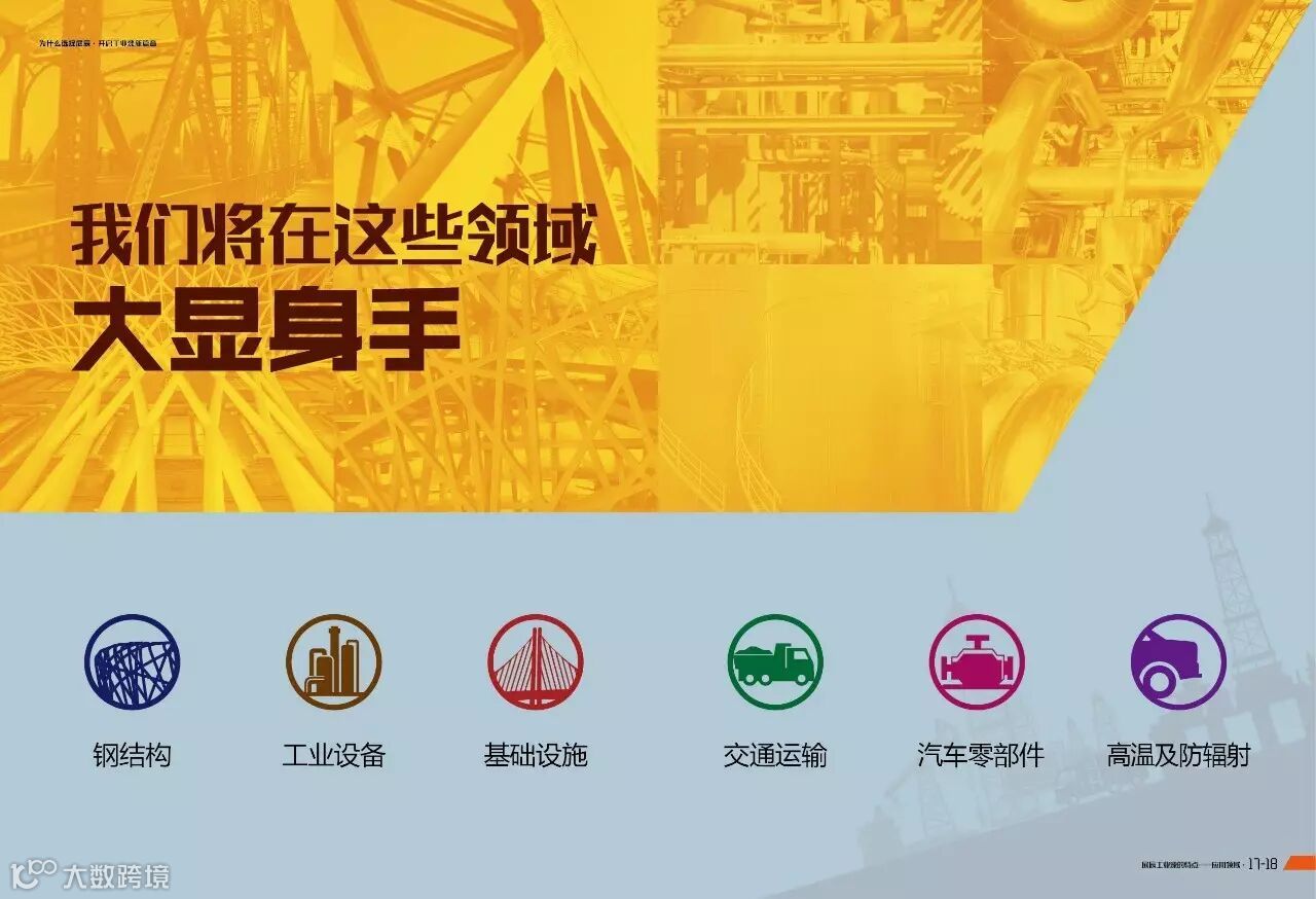 展辰工业漆事业部简介:展辰工业漆事业部隶属于展辰集团,立足于自主研发、销售,整合优质生产资源,以"突破传统工艺、引用前沿新材料、引领水性防腐新变革"为己任,致力于打造中国工业涂料领导品牌。产品应用于钢结构、工业设备、基础设施、交通运输、汽车零部件、耐高温及防辐射等防腐领域。