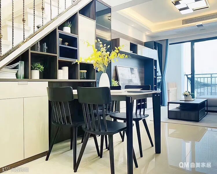 充分利用楼梯下的不规则空间,解决餐桌周边和就餐场景中的收纳问题。