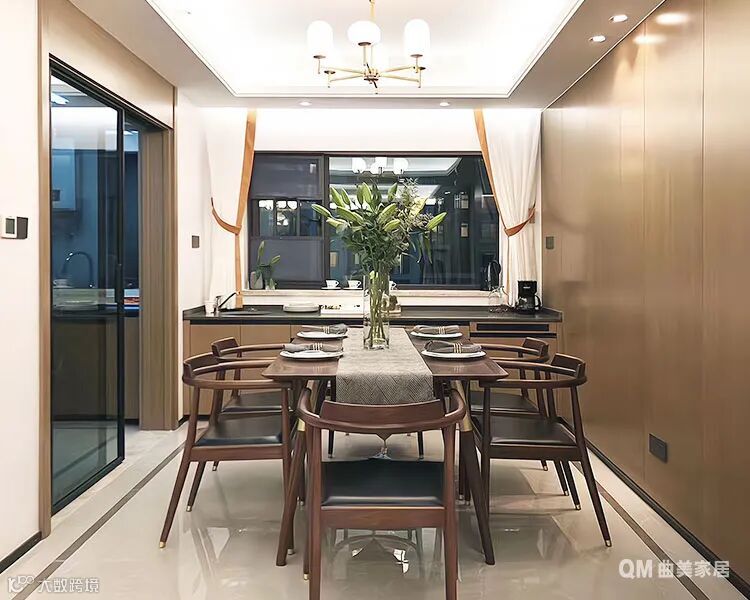 面宽窄的餐厅,可以把西厨放在窗户下,省去吊柜,边备餐边欣赏窗外风景也很惬意。