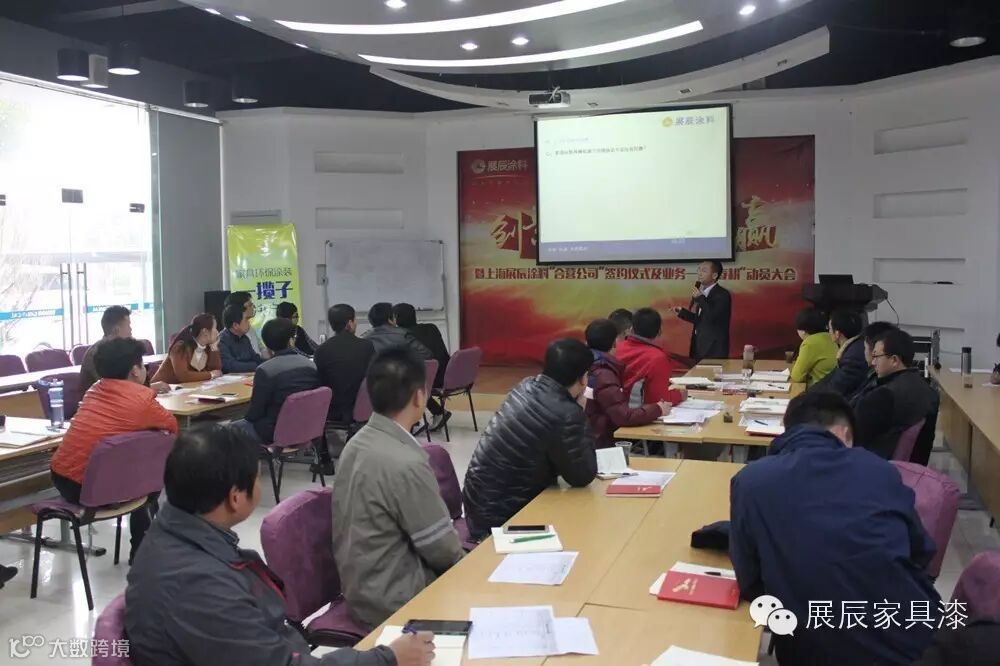 2016年3月6日-7日,面向尤漆优、神漆达、富湘、八宝等业务团队,展辰家具漆营销服务中心培训部以及上海公司技术服务部联合举办了培训。展辰经销商李福民为会议做开篇致辞,从一线员工,到业务精英;从单枪匹马,到带领团队;李福民的传奇经历,鼓舞了在场每一个团队成员。展辰经销商燕东在培训总结表示——“培训是老板送给员工最好的礼物”。