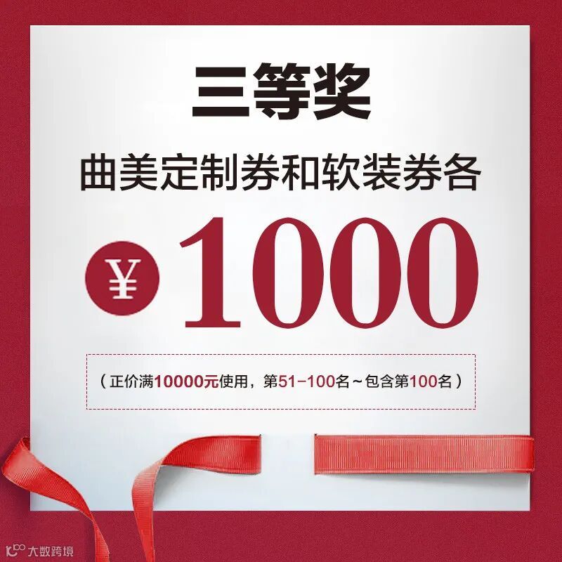 曲美定制券和软装券各1000元(正价满10000元使用,第51-100名~包含第100名)