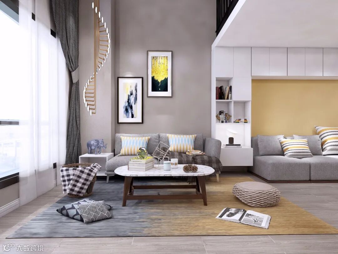 此方案偏向于现代北欧风格,户型层高4.8米左右,上下LOFT错层结构,设计师在改造的时候除了考虑到小户型的正常功能需求外,还将原本沉闷的房子空间通过软装的色彩搭配,展现出新鲜活力的感觉。