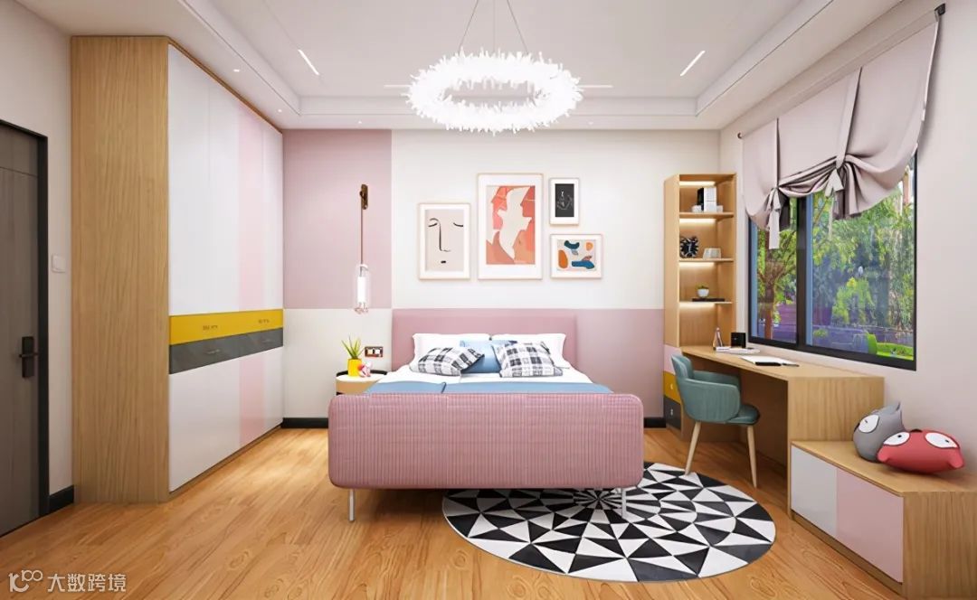 6岁是天真烂漫的年纪,也将要开启正式的学习成长之旅。因此儿童房以淡雅的粉色调为基底,搭配原木色家具,更像是一个充满梦幻气息的城堡。