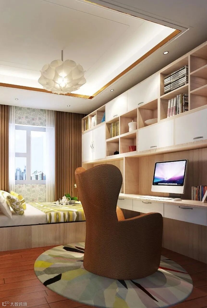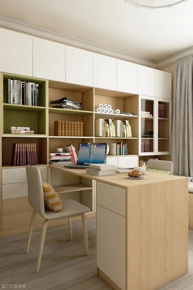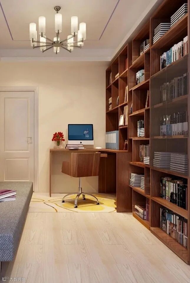 书房设计和装修时,家具的选择往往取决于书房的使用者,中年和青年,儿童和成人,以及男性和女性在喜好方面都会有所差别。