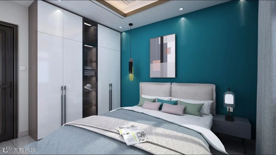 设计男孩房时,设计师大胆地选用蓝色系做背景,传递出一种沉稳,理智的意象,让学习压力大的儿子情绪平复,实现状态重启。