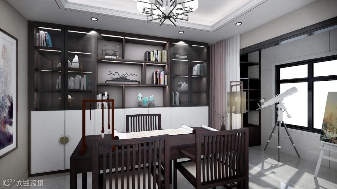 一卷书、一缕清风,一台望远镜,一轮明月,还原生活中的“诗与远方”。书房拥有宽阔空间,设计师通过光、影、材料等细节处理,让业主获得纯粹的阅读享受。