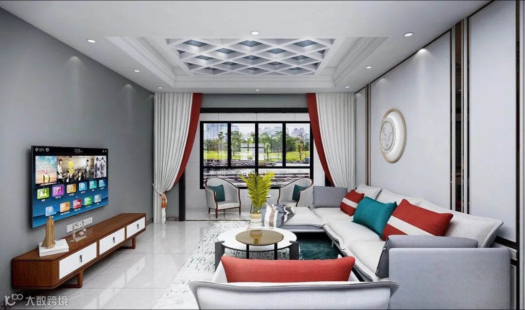 客厅给人一种宾至如归的感受,呈现业主不让人有压力但又追求品质和精致的待客之道,至精至雅、端庄大方。整体以灰白为主色调,营造舒适、静谧的感觉;稍加红色作为点缀,传递出温暖和热情。