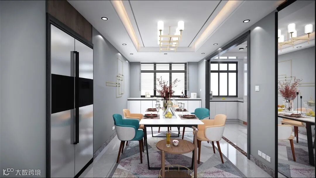 轻奢加极简的设计契合了业主内心需求的准确表达,在简洁的基调上呈现了高级境界。色彩丰富的餐椅增添了空间时尚感,使餐厅更加别致精美,现代感十足。此外,双层小圆几的设计既能贴合半离地高度,也能与餐桌形成高低层次差,营造更现代的空间质感。