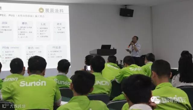 下午14:30,培训正式开始,圣奥集团品管部全体员工近40人参加了此次培训。本次培训课程主要涉及《水性木器环保涂装》----主要介绍了水性木器涂料的发展趋势及现状,展辰公司水性木器涂料环保涂装优势;《水性木器涂料基础知识》----主要讲解了水性木器涂料的概念及种类,水性木器涂料产品特性,水性木器涂料与油性漆性能对比;《水性环保涂装工艺及操作注意事项》----主要介绍了公司产品及涂装工艺,操作注意事项;培训中老师强调了水性木器漆涂装要点:涂装环境及涂料使用、板材处理、涂装要求。课后安排的提问环节,更是让整个培训到达了新高度。