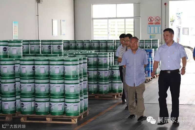 随后,在刘总的陪同下,单会长一行参观了生产车间和成品仓库。并交流了后期将合作带队参观展辰涂料集团总部的相关事项。