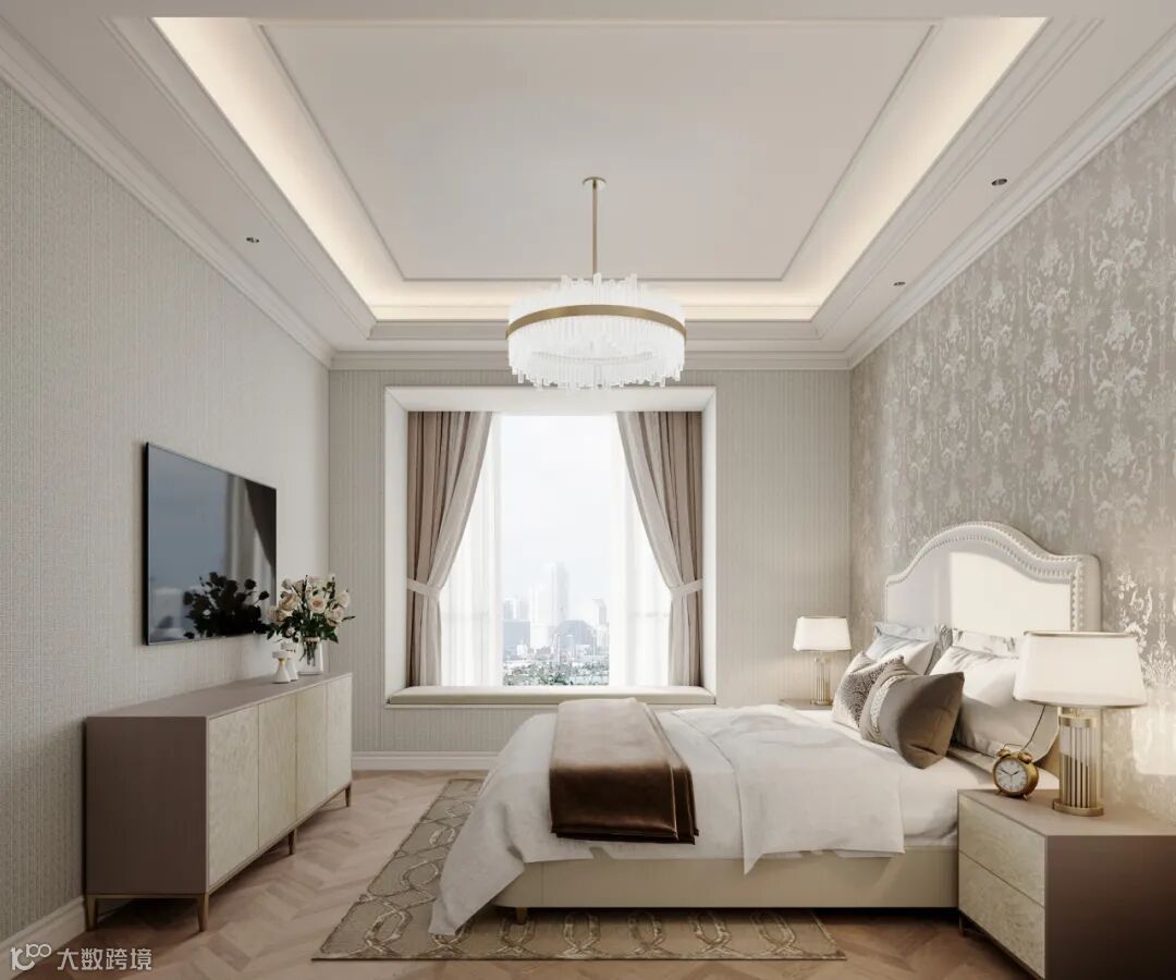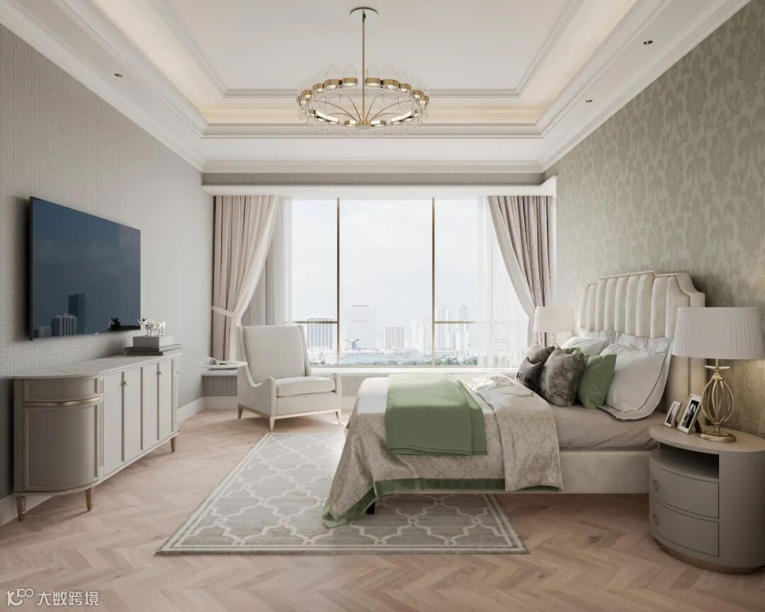 主卧空间布局简约典雅,在卧室开启自己的多元化活动,看本书,喝杯咖啡,和爱人来次品酒夜谈,增进彼此感情。