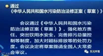 水污染防治法修正案草案22日提请十二届全国人大常委会第二十八次会议进行二次审议。草案二审稿贯彻落实了中央关于生态文明建设的新精神、新要求,增加关于实行河长制的规定,进一步强化地方政府责任,加强流域水污染联合防治与生态保护,加强农业与农村水污染防治,健全饮用水安全保障制度。二审稿尤其加大了对水环境违法行为的处罚力度,对于违法排污行为的罚款金额提高至一百万元。