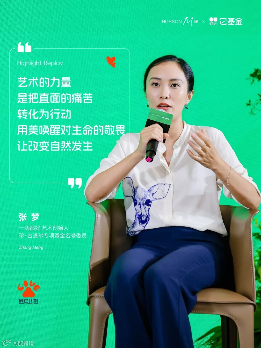作为中国最具影响力的倡导型动物保护公益基金会、中国第一个专注于动物保护的公益基金会「它基金」发起人和理事,著名主持人张越老师可以说是这片“不毛之地”上的开荒者,面对动物保护立法的困境,她的信条是:“保护动物,也是在于改善世道人心。”