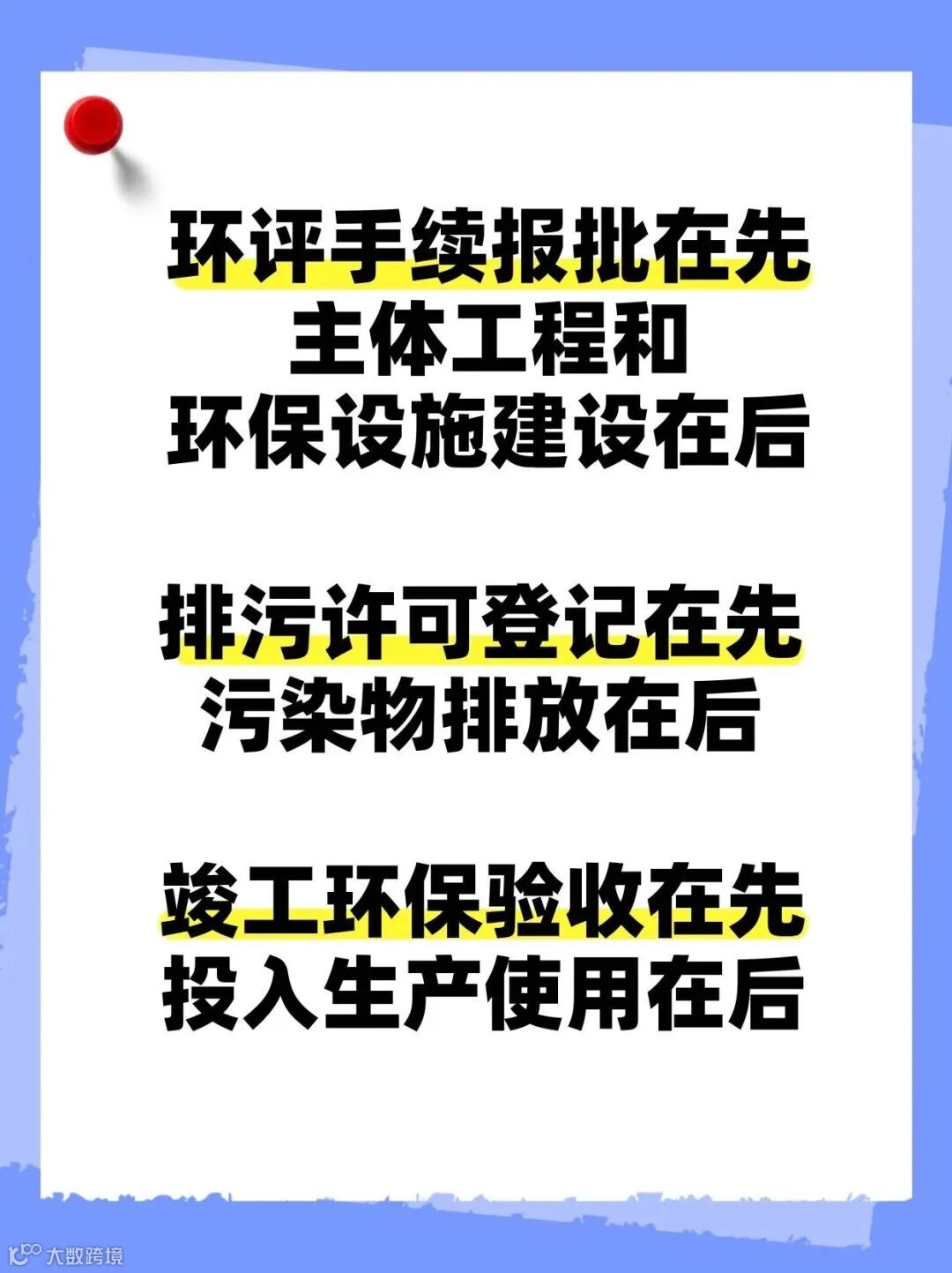 一、严守法定时序:环评报批在先,主体工程和环保设施建设在后;排污许可在先,污染物排放在后;竣工环保验收在先,投入生产使用在后。