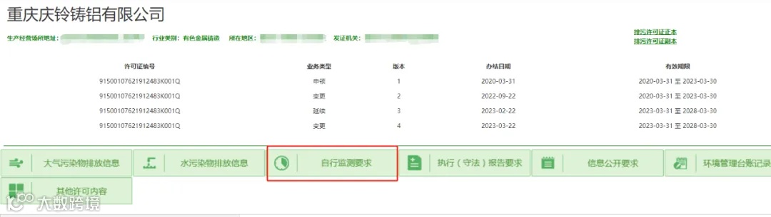 开展自行监测工作前,应前往“全国排污许可证信息管理平台”查询最新版本的排污许可证,了解掌握最新版本排污许可证中的具体规定。