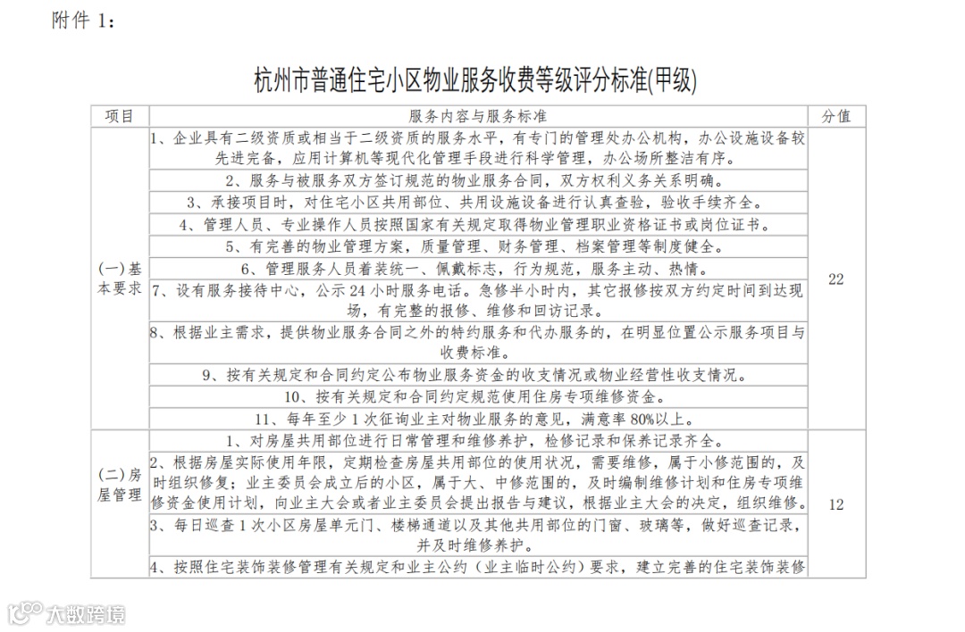 附件3:杭州市普通住宅小区物业服务收费等级评分标准(甲级)